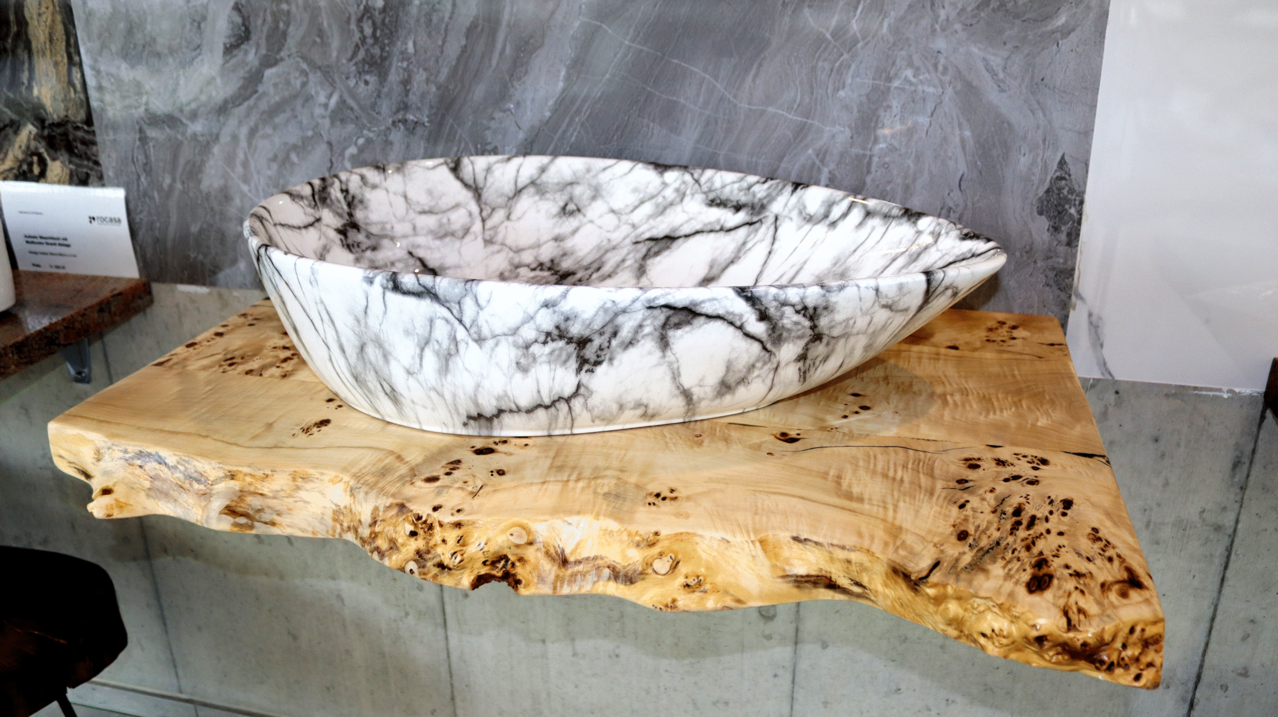 Lavabo aus Porzelan / Marmoroptik / Holzablage wilde Pappel